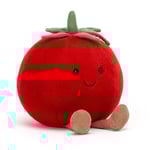 Amuseable Tomato is one sun-ripened rogue! Rosy and plump as a cricket ball, topped with a scruffly, leafy cap, this bright red bounder in toffee cord booties is equally at home in the kitchen or the garden. Anywhere where there's sunlight, in fact!