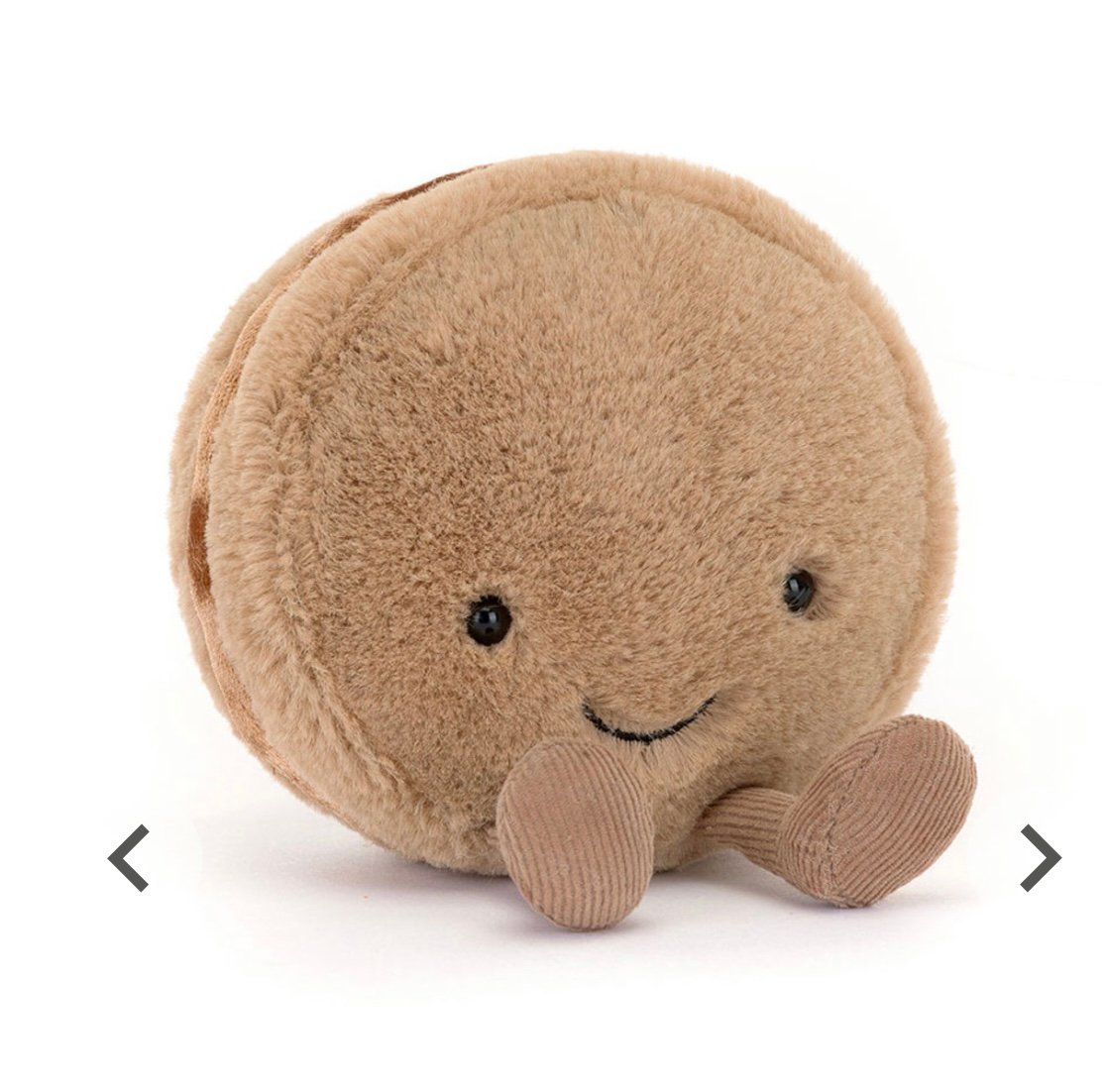 Amuseables Mona Macaron is deliciously soft in chocolate fur. With cordy cocoa feet, and a velvety filling, Mona has an embroidered Jellycat logo on the back for a truly luxurious treat!