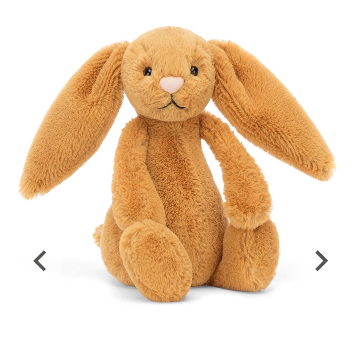 Bashful Golden Bunny is simply scrumptious in cloudy-soft honeycomb fur. With big squashy paws, long lopsy ears, a gentle expression and a neat little bobtail, this sunny silly brings the sunshine! Podgy, perfect and hopping soon to a carrot patch near you.