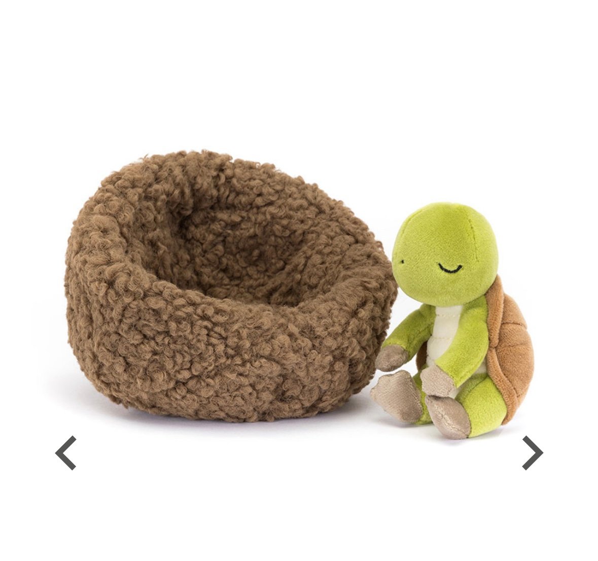 Do you hear that tiny yawn? It must be Hibernating Tortoise. This stretchy wee hatchling has fern-green fur, a toffee-soft shell and mocha feet. Fast asleep with a sweet stitch expression in a cloudy-cuddly fleecy nest, this tortoise has taught us it's good to relax.